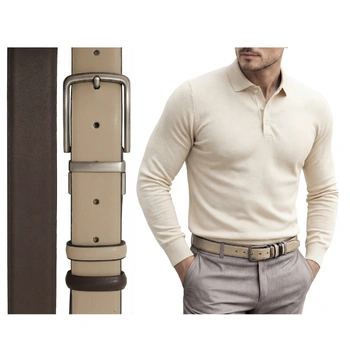 Pasek skórzany do spodni dwustronny beż brąz elegancki klasyczny premium