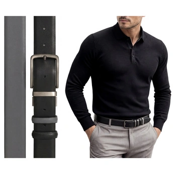 Męski pasek klasyczny skórzany do spodni dwustronny czarny szary elegancki