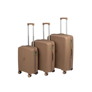 Zestaw walizek twardych podróżnych beżowych 3 szt. S, M, L polipropilen na kółkach 7918 Champagne