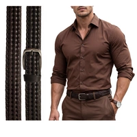 Pasek męski brązowy skórzany pleciony bezrozmiarowy do spodni do jeansów klasyczny
