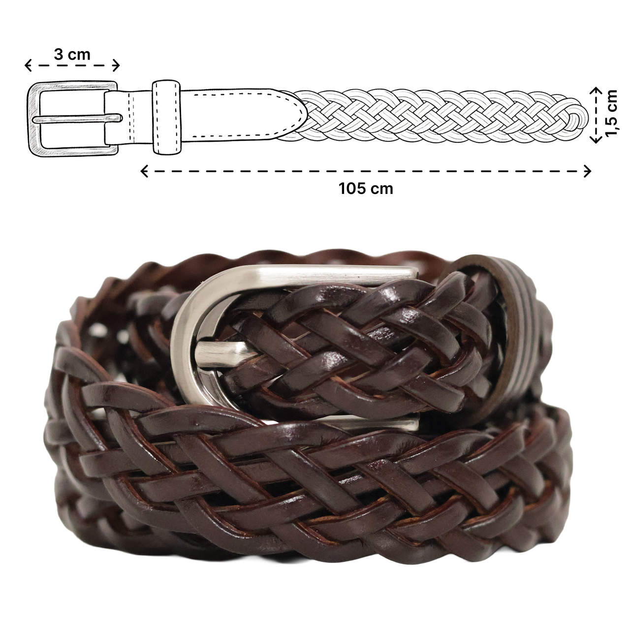 ➡️ Do stylizacji eleganckich i casualowych – bordowy odcień i pleciona skóra sprawiają, że pasek pasuje do wielu kolorów i faktur.