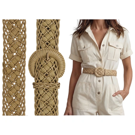 Jego jasny, waniliowy odcień dodaje stylizacjom lekkości i świeżości, pięknie łącząc się z garderobą w stylu boho, romantycznym, minimalistycznym czy codziennym casualu. Dzięki plecionej konstrukcji możesz zapiąć go w dowolnym miejscu, co sprawia, że dopasowuje się do każdej sylwetki i świetnie podkreśla talię przy sukienkach, spódnicach czy tunikach.