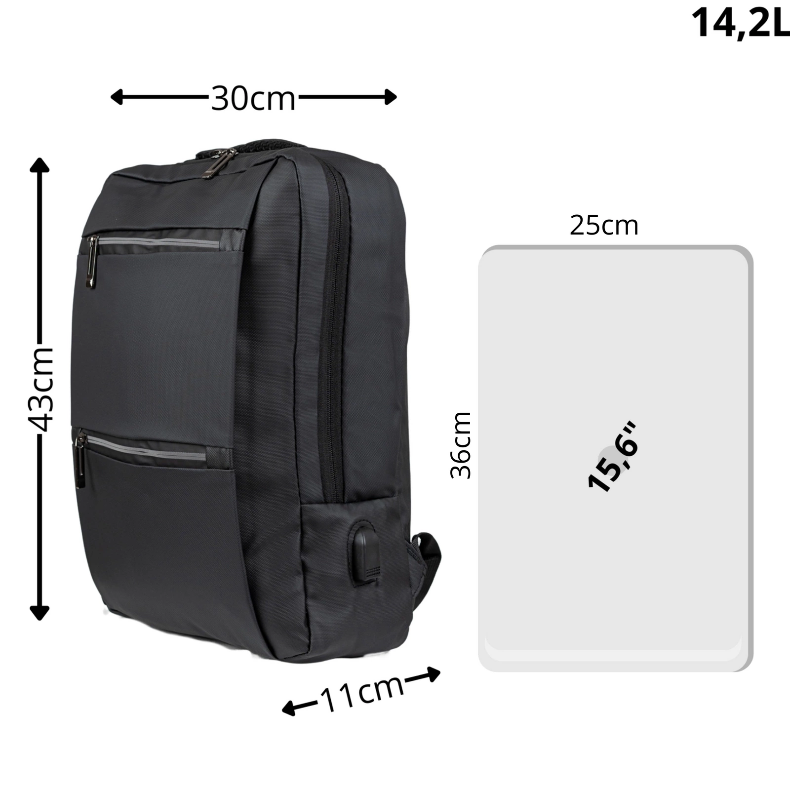 - Czarny plecak szkolny młodzieżowy unisex – idealny dla chłopców i dziewczyn do szkoły, technikum oraz na studia. Lekki i pojemny 14,2 l (43x30x11 cm), mieści laptop 15,6". Wykonany z wodoodpornego poliestru, praktyczny na uczelnię, do pracy i w podróży.