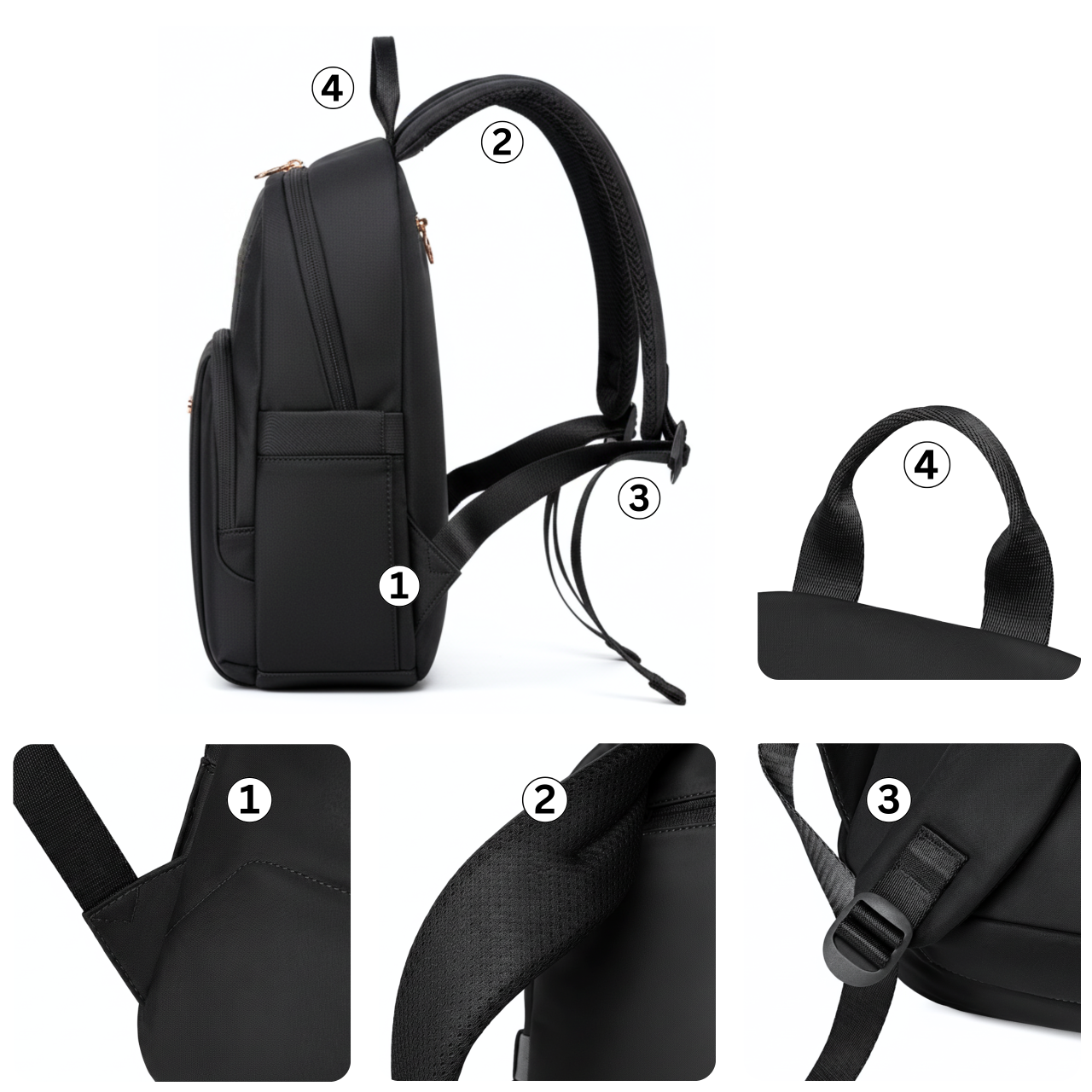 Czarny plecak to klasyka sama w sobie — a dzięki dopracowanym elementom konstrukcji staje się jeszcze bardziej funkcjonalny i odporny na codzienne wyzwania. Oto, co kryje się pod numerami na zdjęciu: