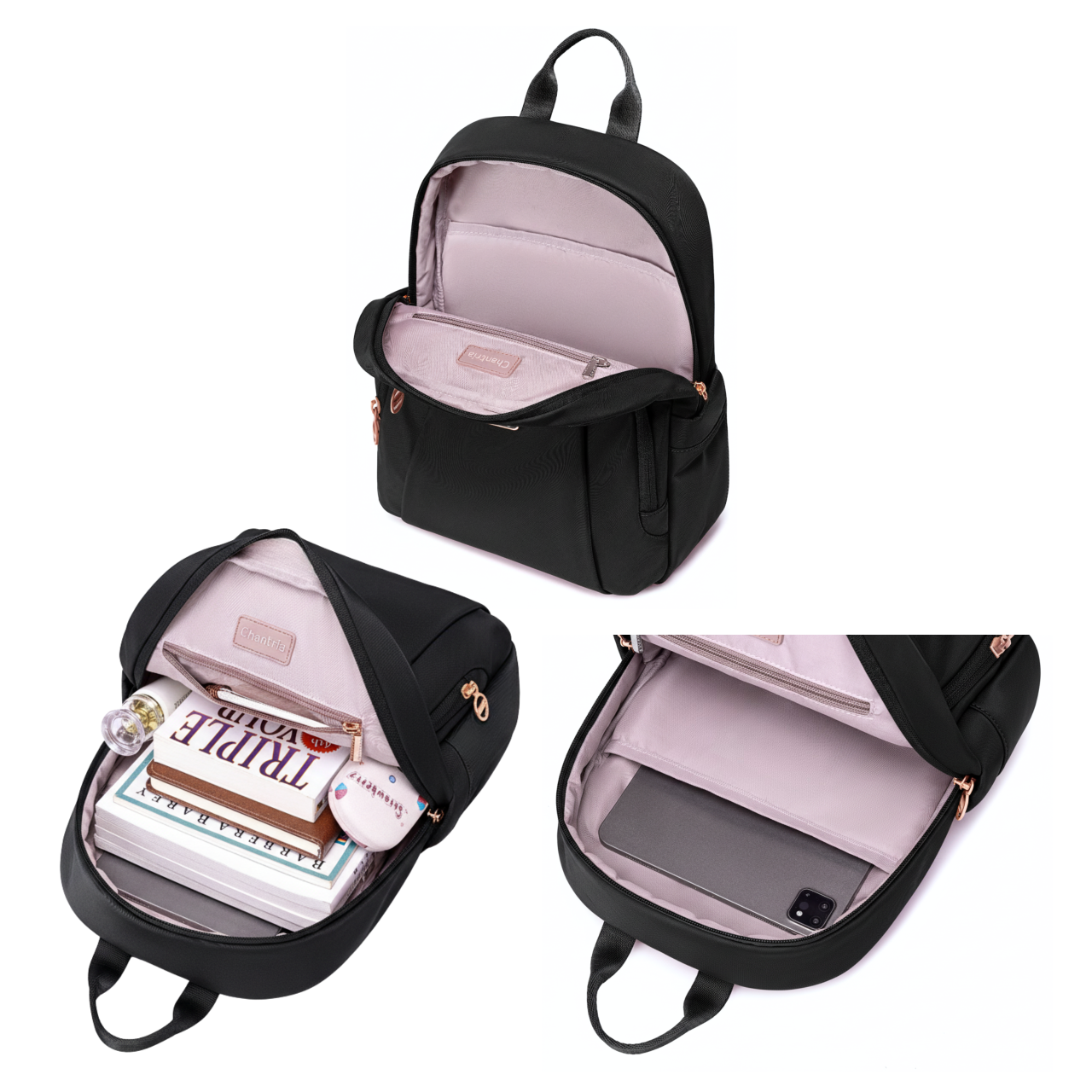 Plecak damski czarny elegancki z nylony wodoodpornego z miejscem na tablet
