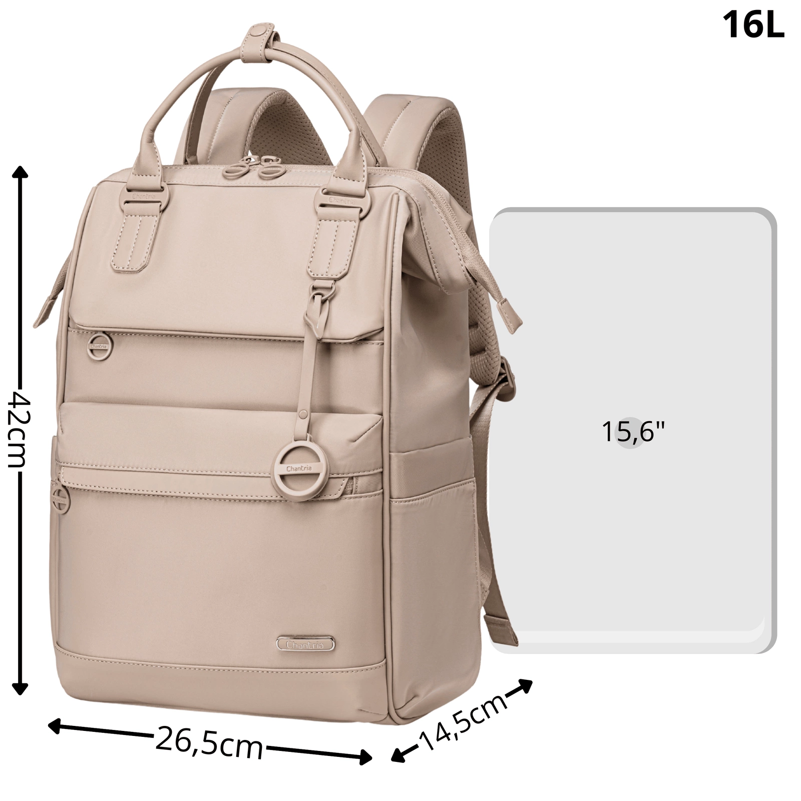 - Plecak damski miejski beżowy 16L – elegancki i funkcjonalny. Posiada 13 praktycznych kieszeni, idealny na studia, do pracy i na co dzień. Wymiary 42x26,5x14,5 cm sprawiają, że jest pojemny, lekki i modny, doskonały dla każdej dziewczyny.