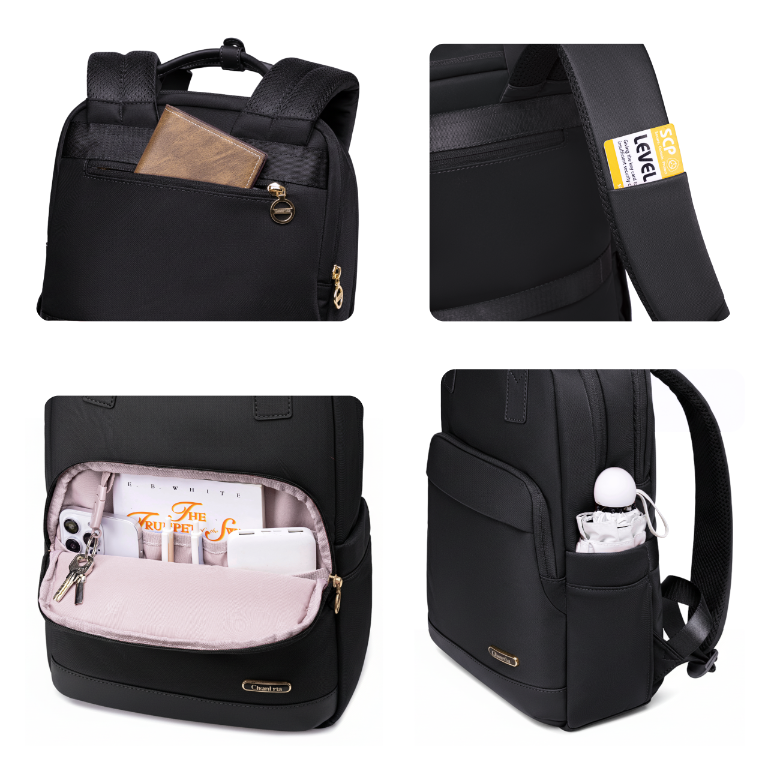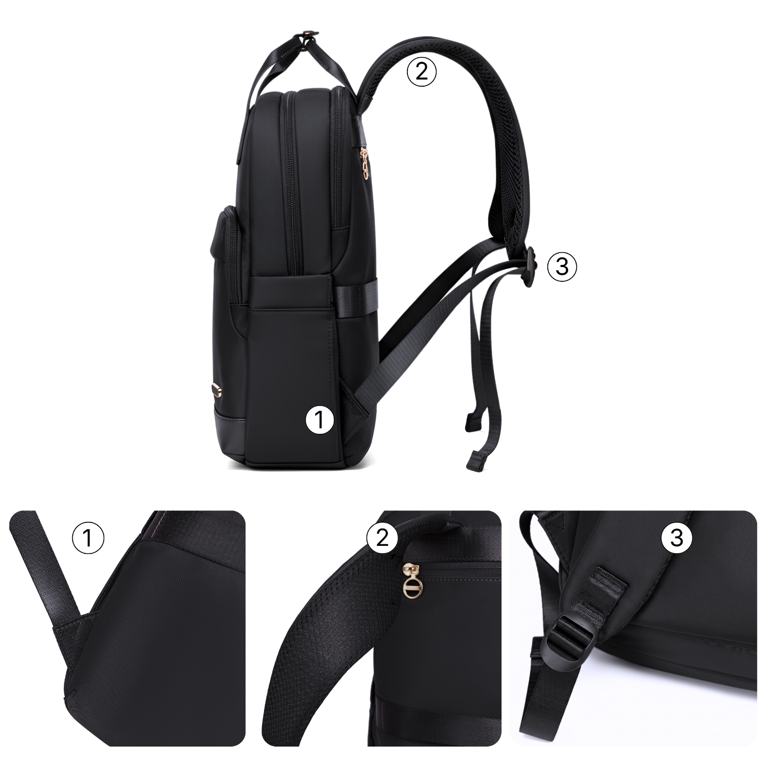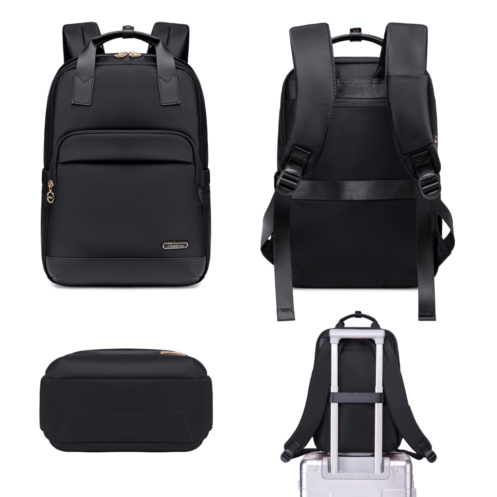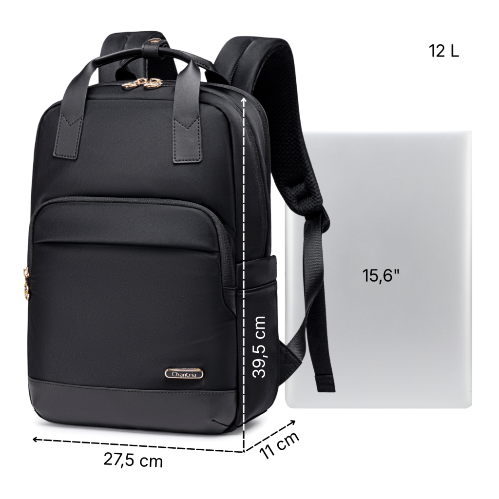 Dzięki kompaktowym wymiarom 40 × 28 × 11 cm ten czarny plecak damski spełnia wymagania bezpłatnego bagażu podręcznego w większości europejskich linii lotniczych. To praktyczny wybór na city break, podróże służbowe i codzienne użytkowanie — zabierasz wszystko, co potrzebne, bez dopłat i stresu na lotnisku.