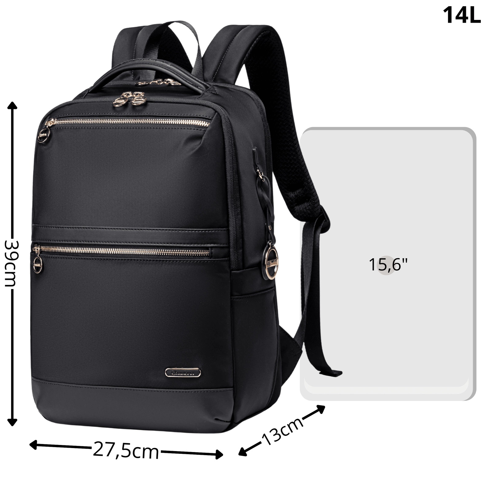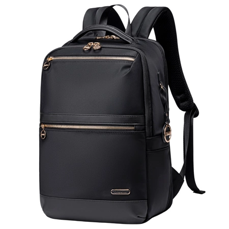 - Czarny plecak damski elegancki 13 kieszeni – idealny na uczelnię, do pracy i na co dzień. Trzyma formę, mieści laptopa 15,6". Solidny materiał, wygodne szelki i pasek mocujący. Stylowy i praktyczny wybór.