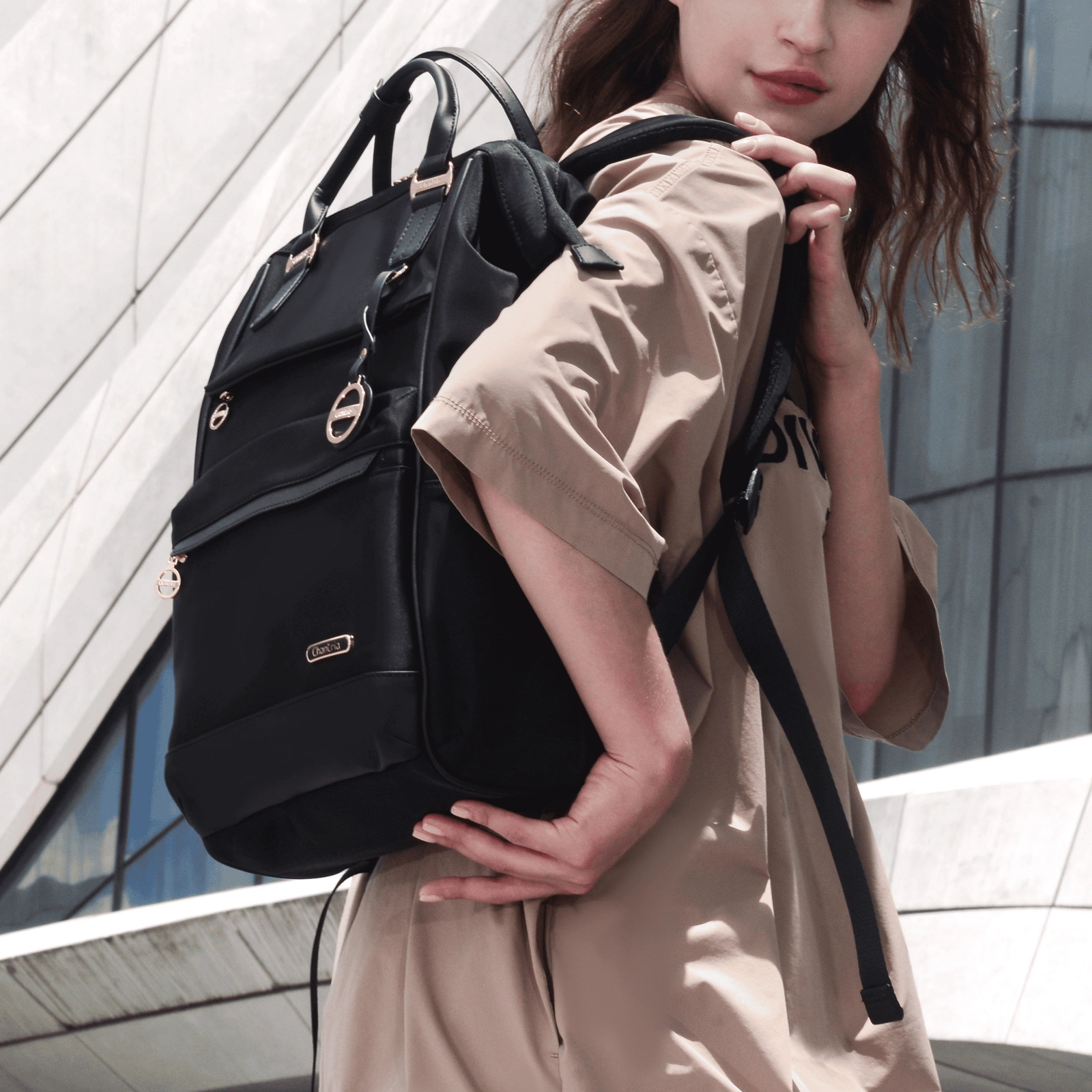 Materiał, z którego wykonano plecak CHANTRIA, to wysokiej jakości wodoodporny nylon. Łączy w sobie praktyczność, wytrzymałość i elegancki wygląd.