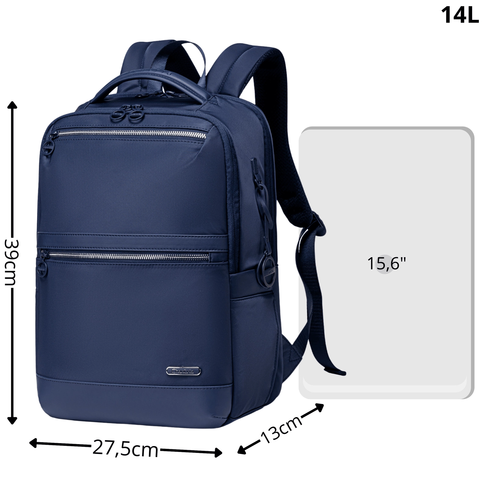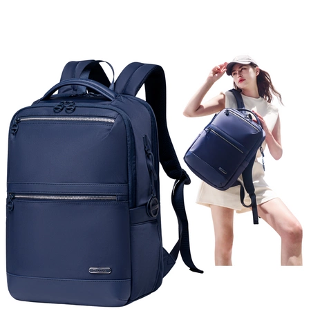 - Ciemnoniebieski plecak damski miejski – 13 kieszeni, wodoodporny nylon i detale premium. Idealny na studia, do biura i w podróż. Pojemny, wygodny, z paskiem do walizki. Elegancki styl i codzienna funkcjonalność.