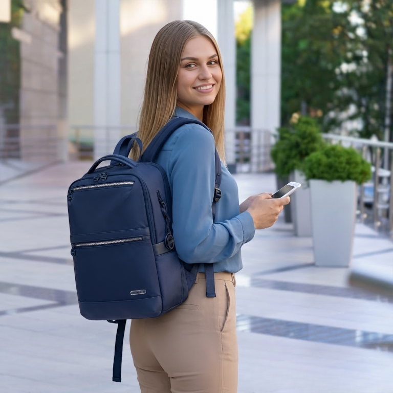 Dzięki takiemu rozmieszczeniu kieszeni plecak zapewnia komfort użytkowania, porządek i szybki dostęp do najpotrzebniejszych rzeczy w każdej sytuacji — w mieście, w drodze do pracy czy podczas podróży.