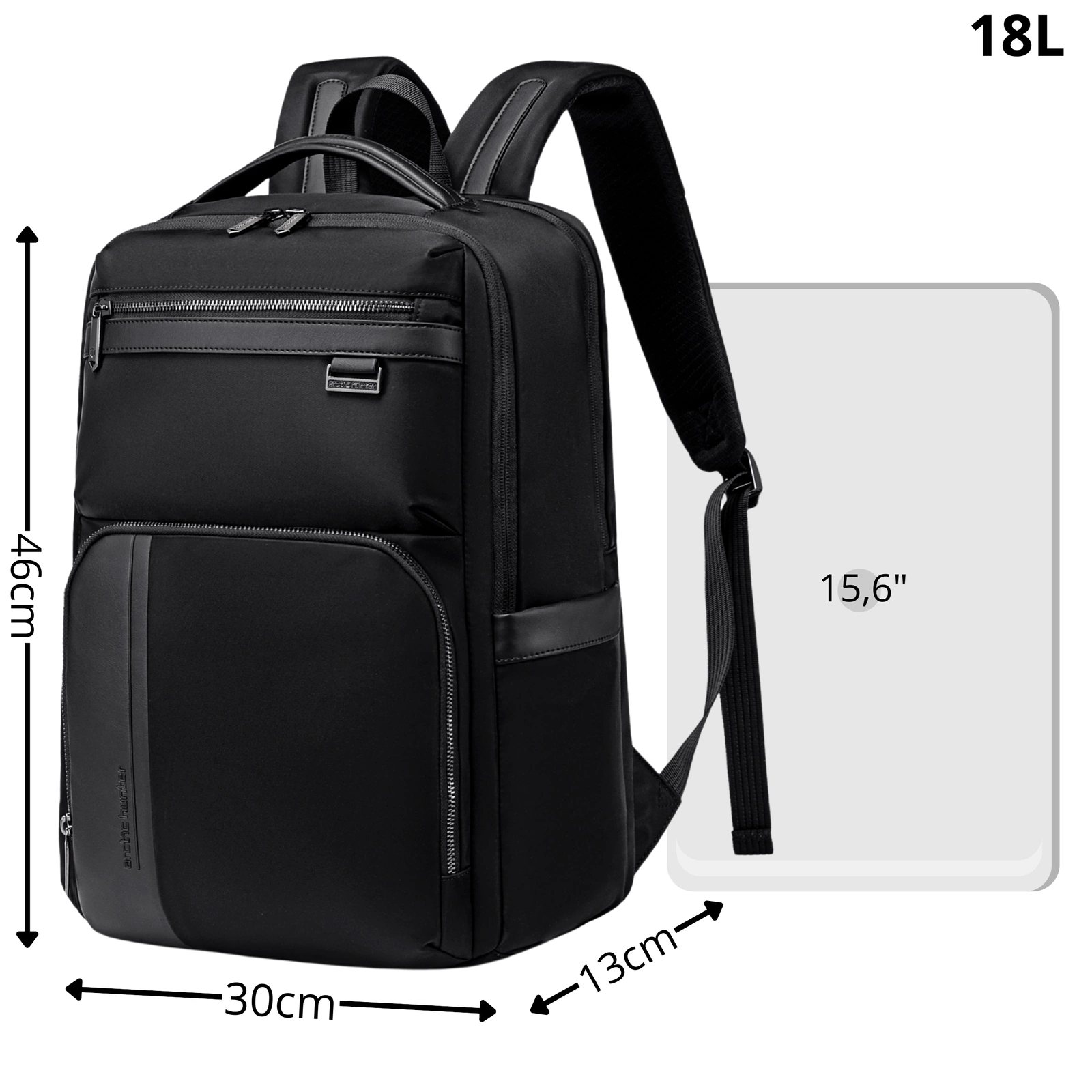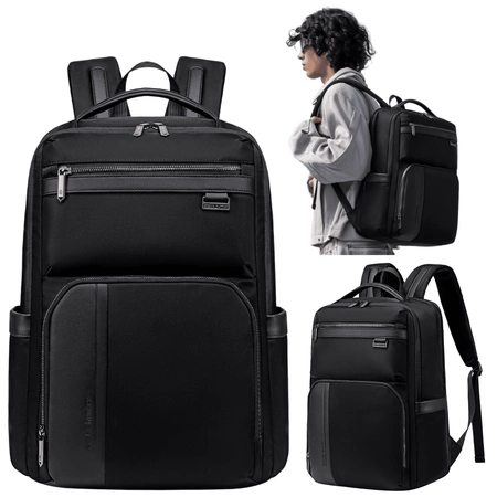 - Czarny plecak biznesowy męski na laptopa 15,6", wodoodporny, z 14 kieszeniami i 3 komorami. Idealny do pracy, na studia i w podróż. Stylowy, nowoczesny, z paskiem mocującym do walizki i wentylowanymi plecami.