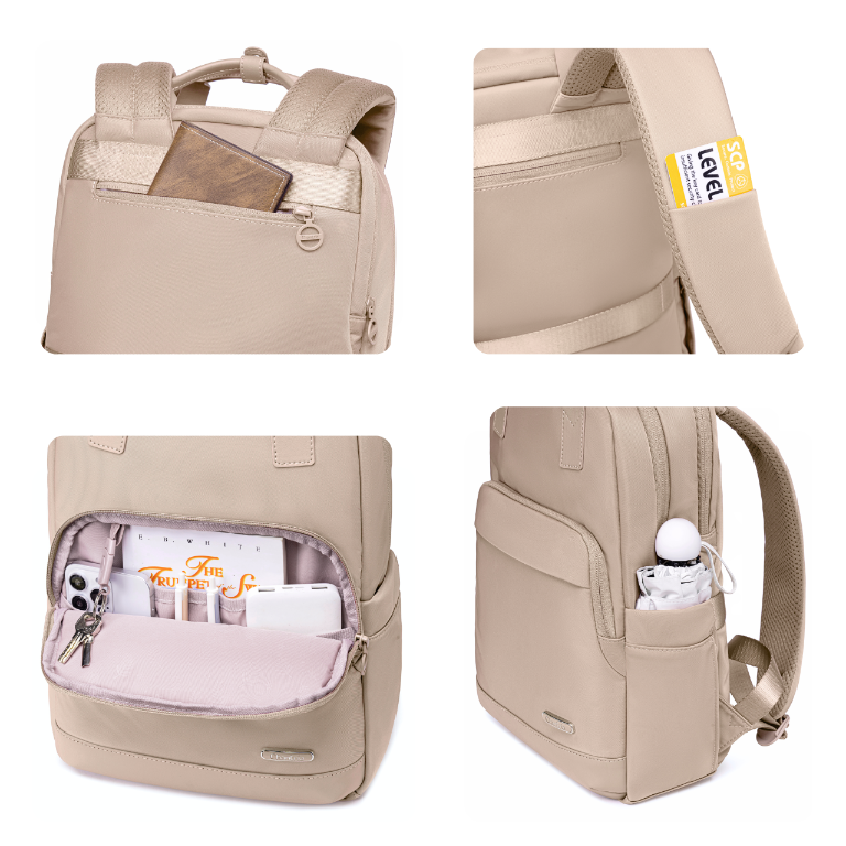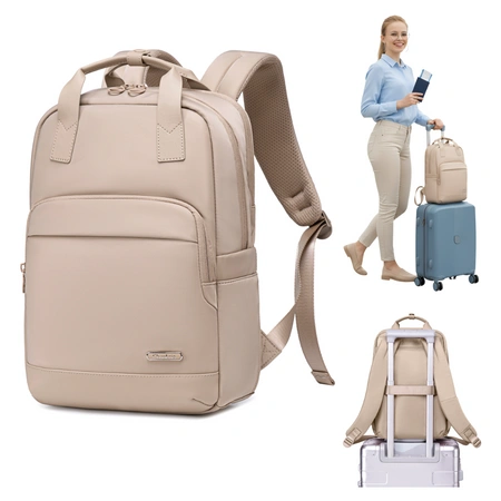 Dzięki kompaktowym wymiarom 40 × 28 × 11 cm ten beżowy plecak damski doskonale wpisuje się w wymagania bezpłatnego bagażu podręcznego większości europejskich linii lotniczych. To świetny wybór na city break, wyjazdy służbowe i codzienne podróże — wszystko, czego potrzebujesz, masz zawsze przy sobie, bez stresu i dodatkowych kosztów.