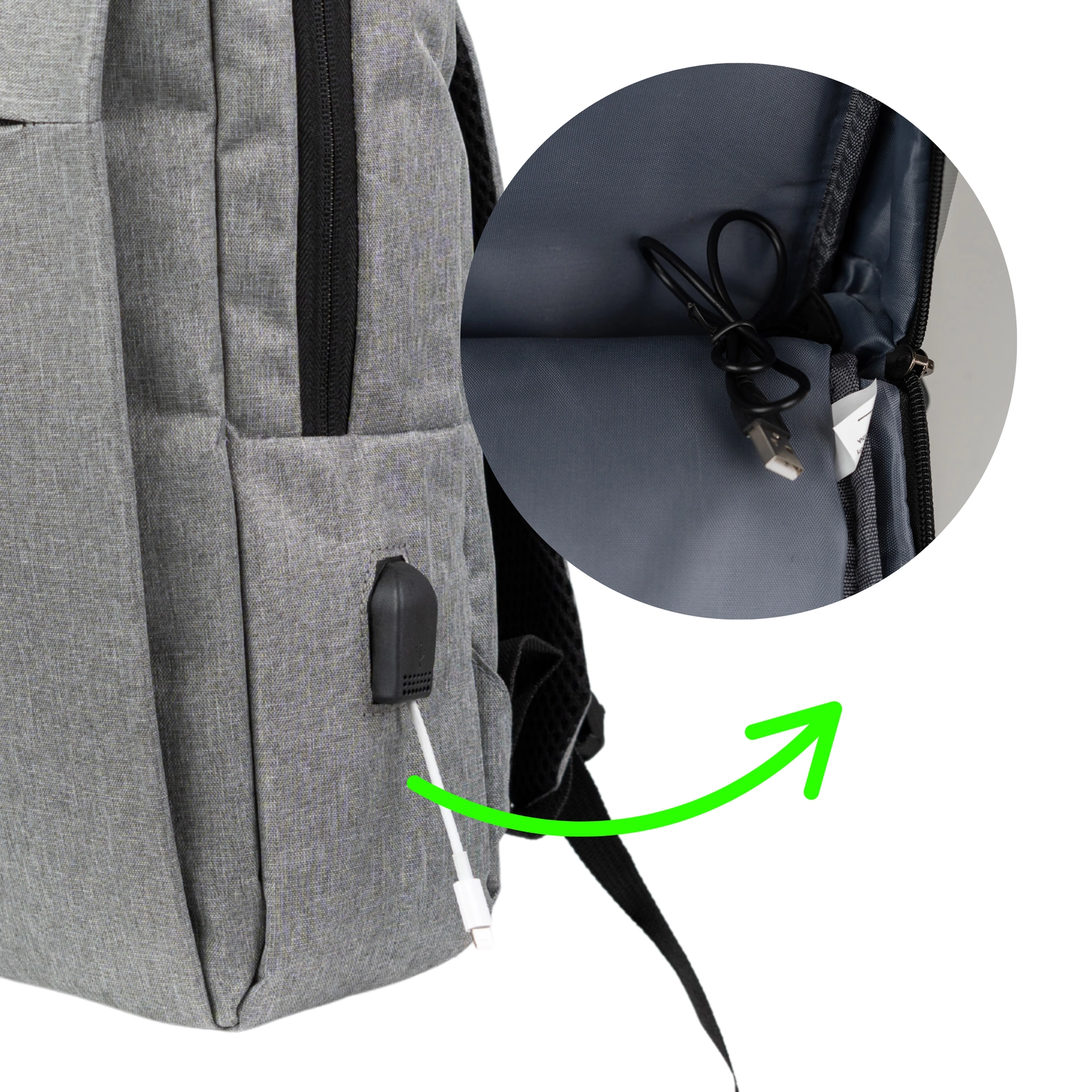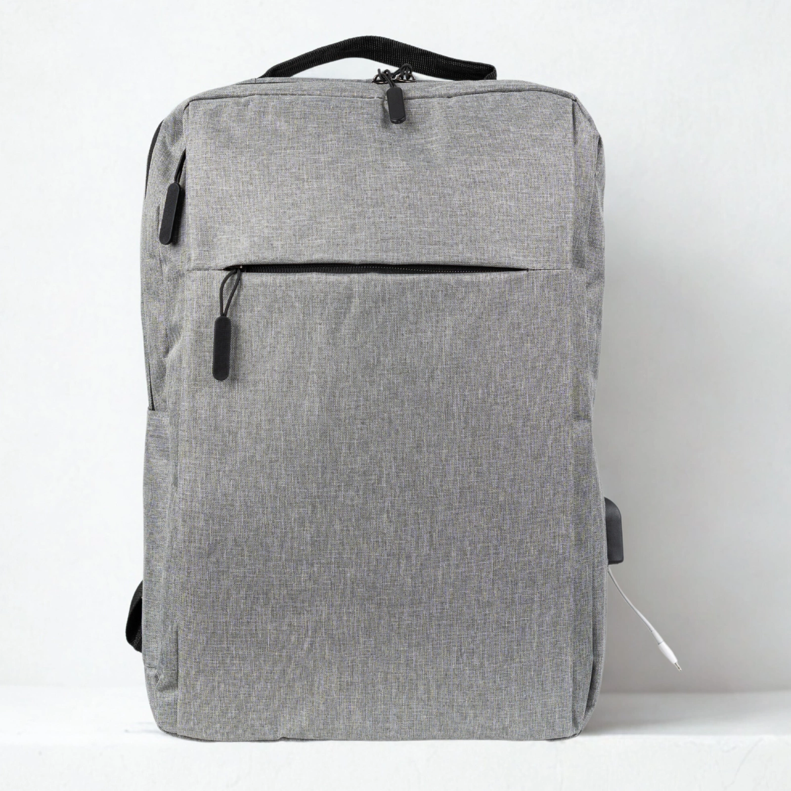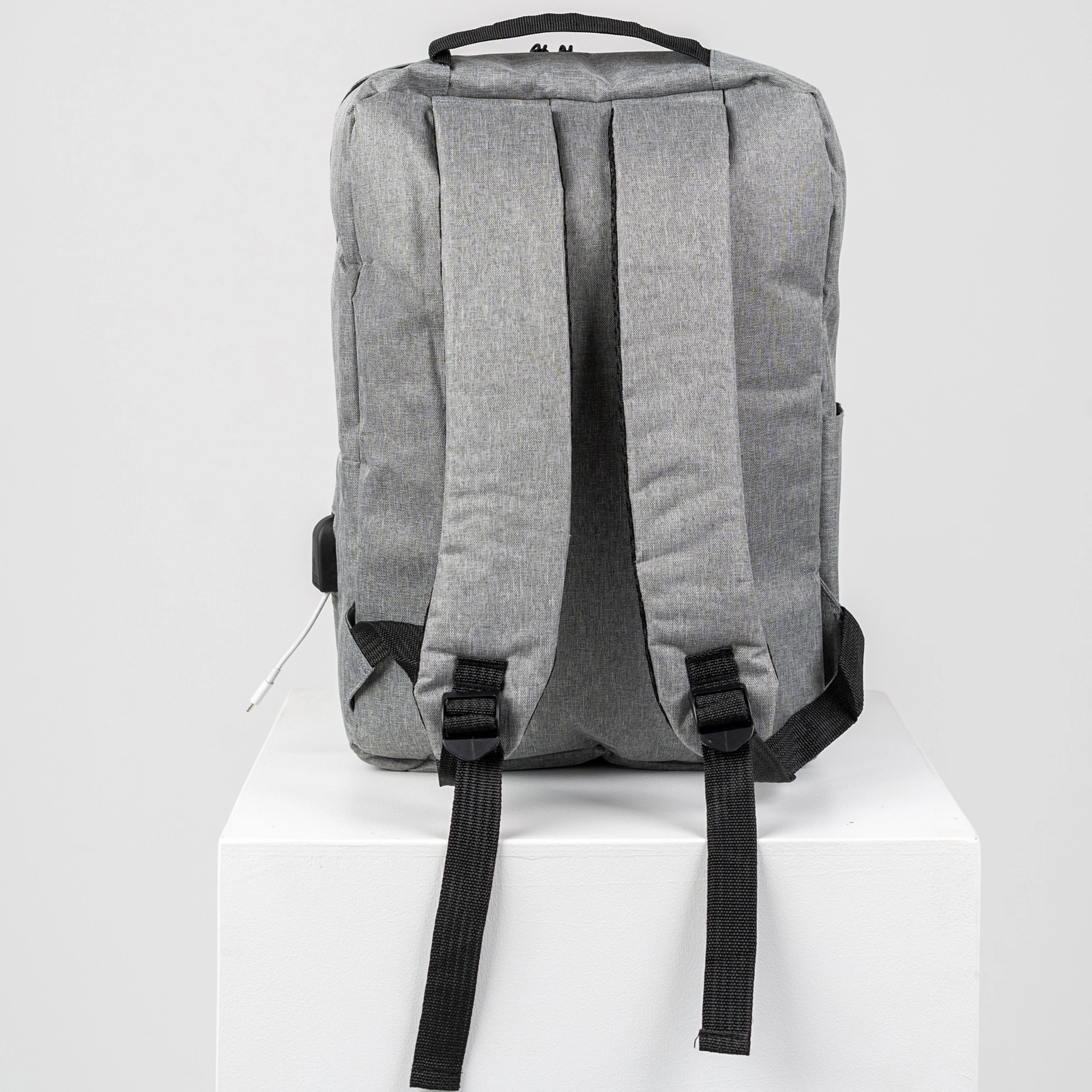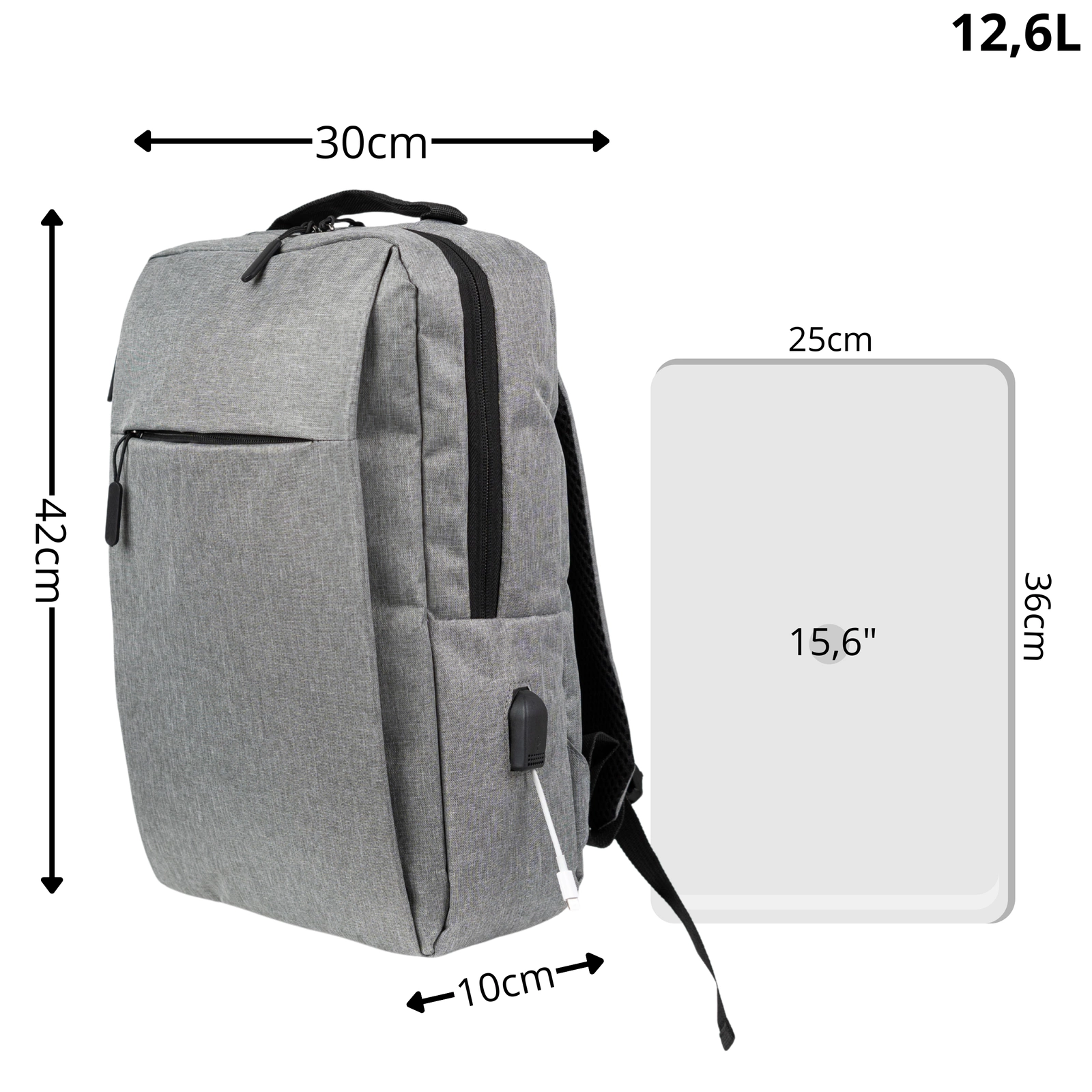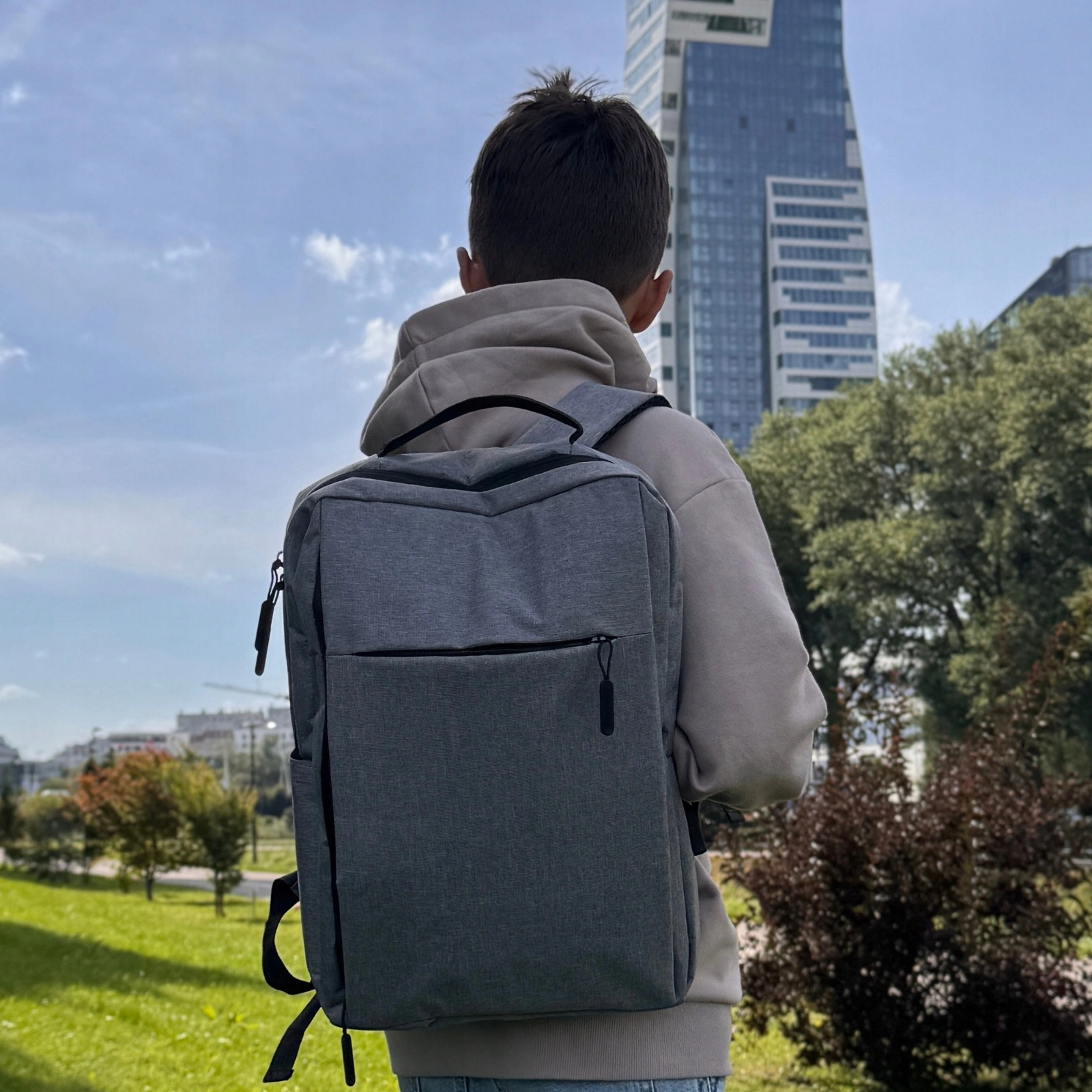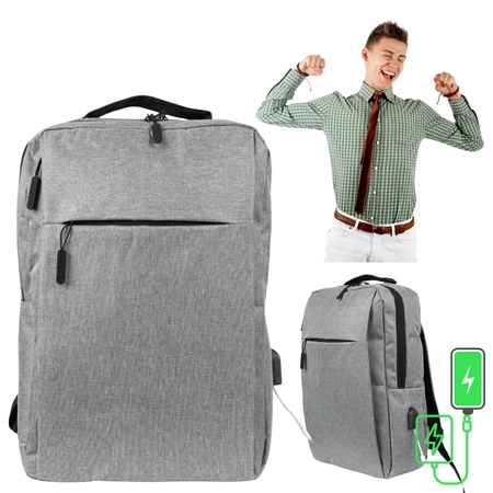 - Szary plecak szkolny młodzieżowy damsko-męski na laptopa 15,6” z wejściem USB i kablem. Lekki, praktyczny i pojemny – doskonały do szkoły, na studia, do pracy i na co dzień. Wymiary 42x30x10 cm, pojemność 12,6L, wygodne szelki i nowoczesny design.