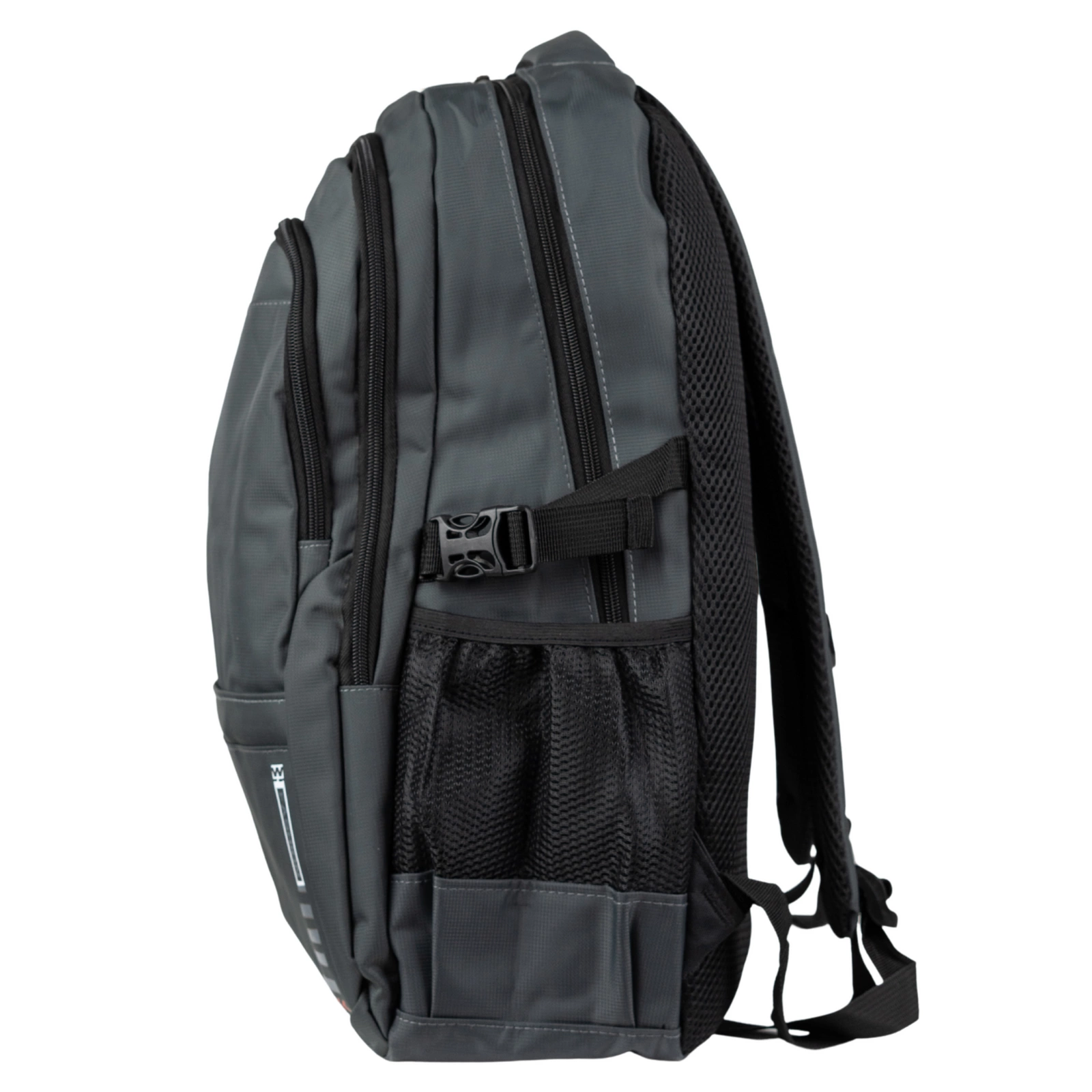 - Szary plecak szkolny o pojemności 28L. Dwie komory, boczne siatki i przednia kieszeń. Trwały poliester, regulowane szelki i miękkie plecy. Uniwersalny kolor, idealny dla uczniów, studentów i do podróży.