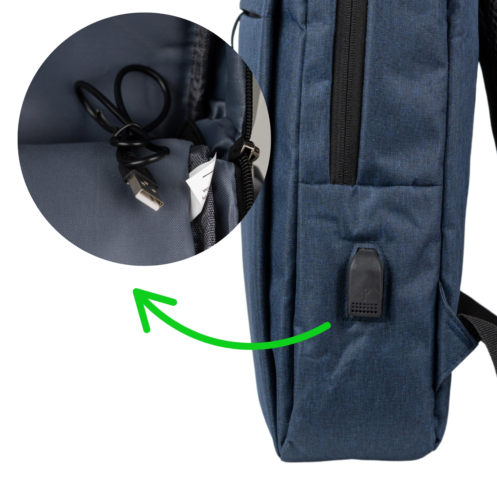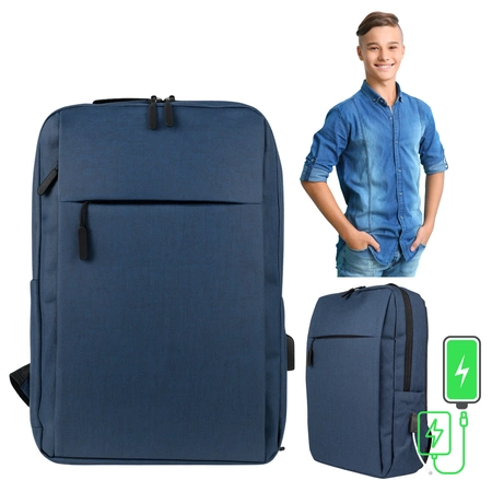 Plecak młodzieżowy nowoczesny szkolny niebieski na laptopa 15,6" z USB HN212701 blue