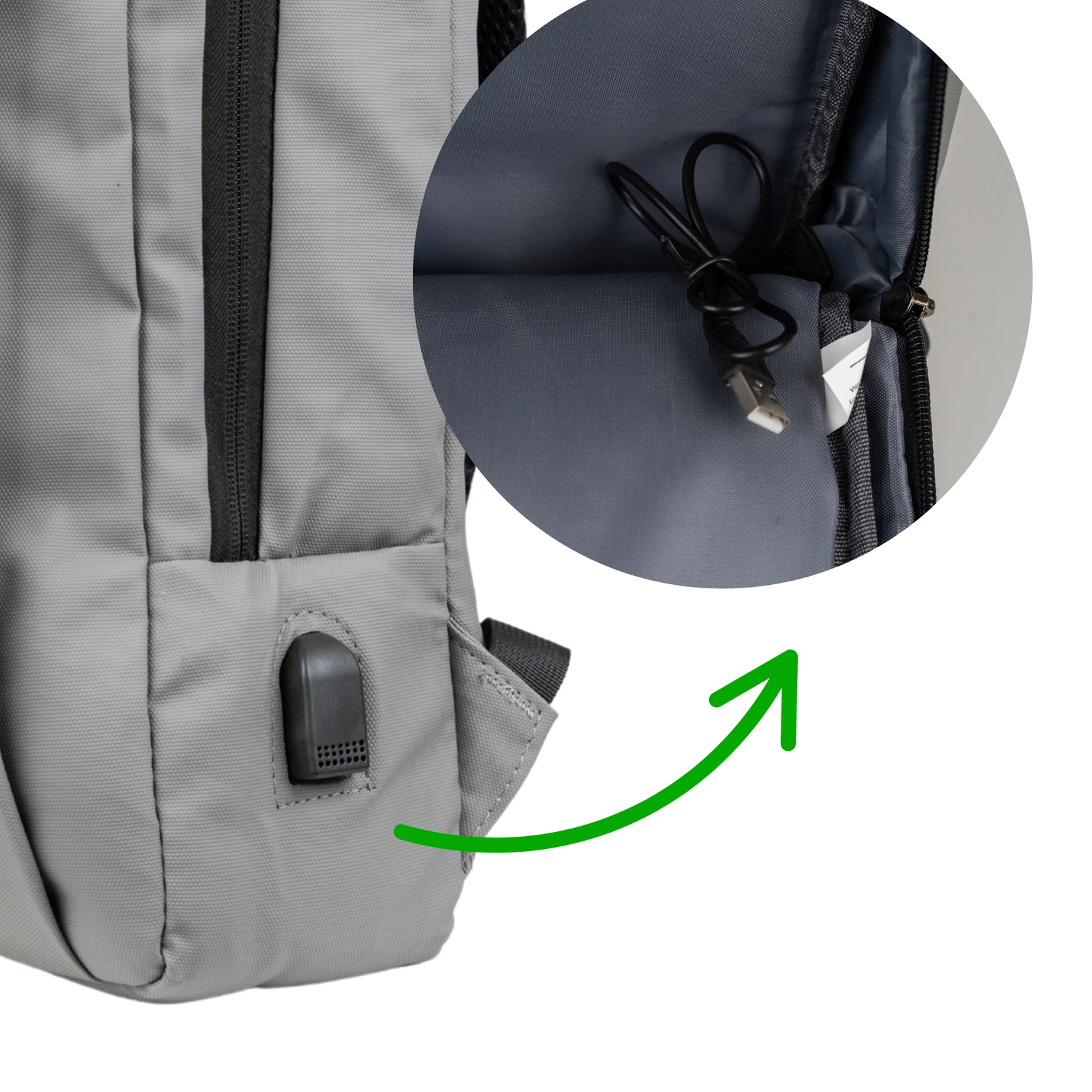 Nie musisz już martwić się o rozładowany telefon. Szary plecak VIO ma wbudowany port USB z dołączonym kablem, dzięki czemu możesz podłączyć powerbank wewnątrz plecaka i wygodnie ładować urządzenia z zewnątrz.