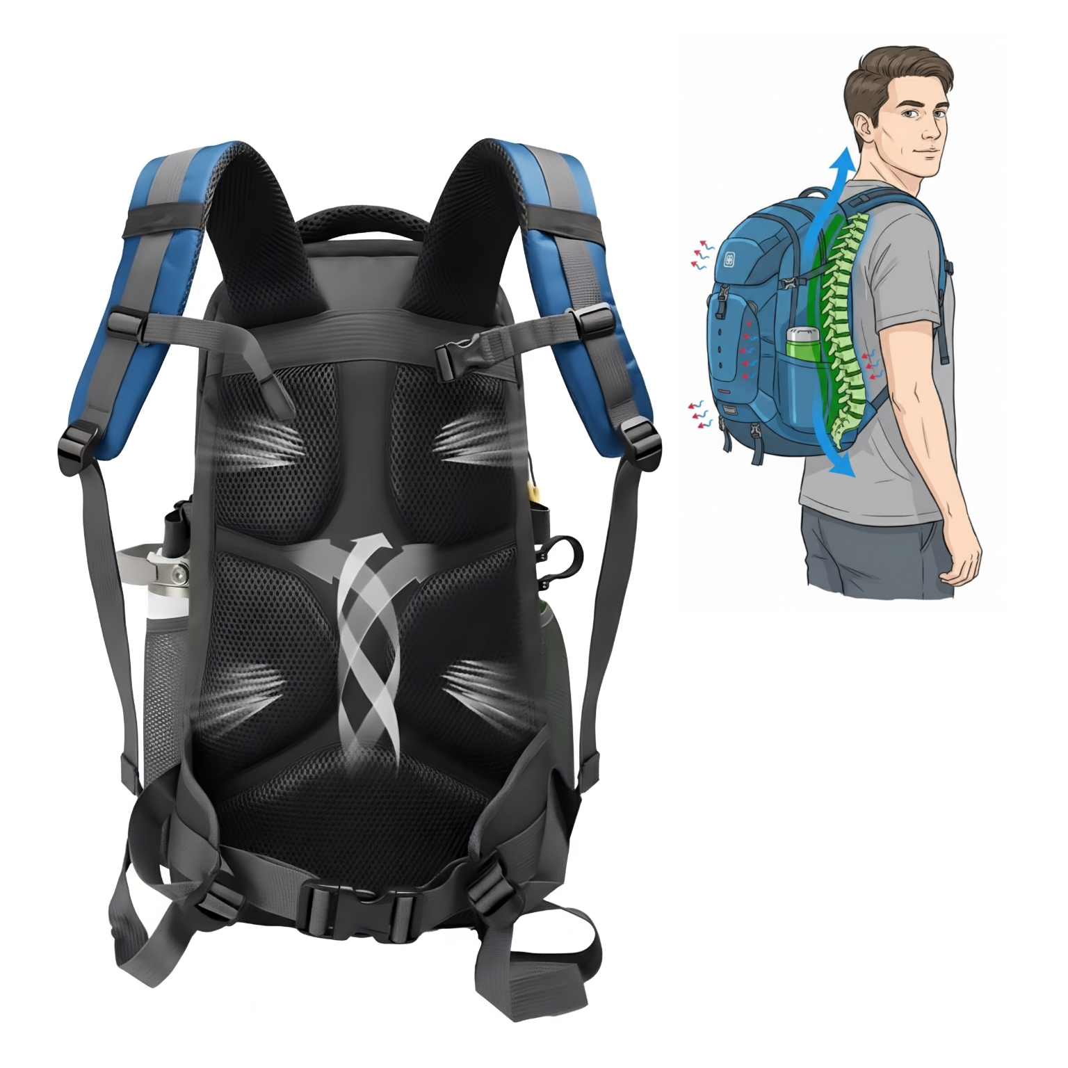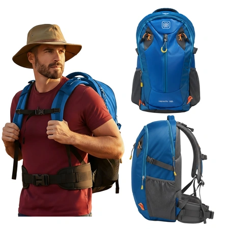 Ten niebieski plecak podróżny został zaprojektowany z myślą o osobach, które oczekują czegoś więcej niż zwykłego plecaka. To połączenie dużej pojemności, wygody noszenia i funkcjonalnych rozwiązań, które realnie ułatwiają każdą wyprawę — od weekendowego wyjazdu, przez trekking w terenie, aż po dłuższe podróże backpackerskie.