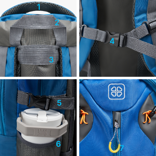 1️⃣ Miękki górny uchwyt: Wyściełany i przyjemny w dotyku, umożliwia wygodne przenoszenie plecaka w ręce oraz szybkie podniesienie go bez ucisku dłoni.