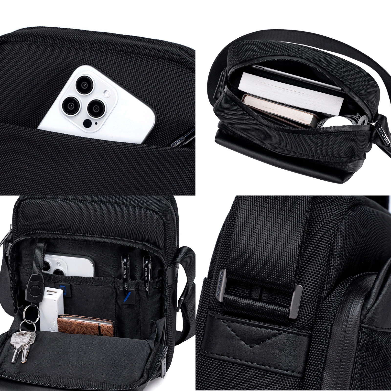 Saszetka męska czarna na ramię torba miejska wodoodporna biznesowa stylowa funkcjonalna 3,4 L Arctic Hunter K00679Black
