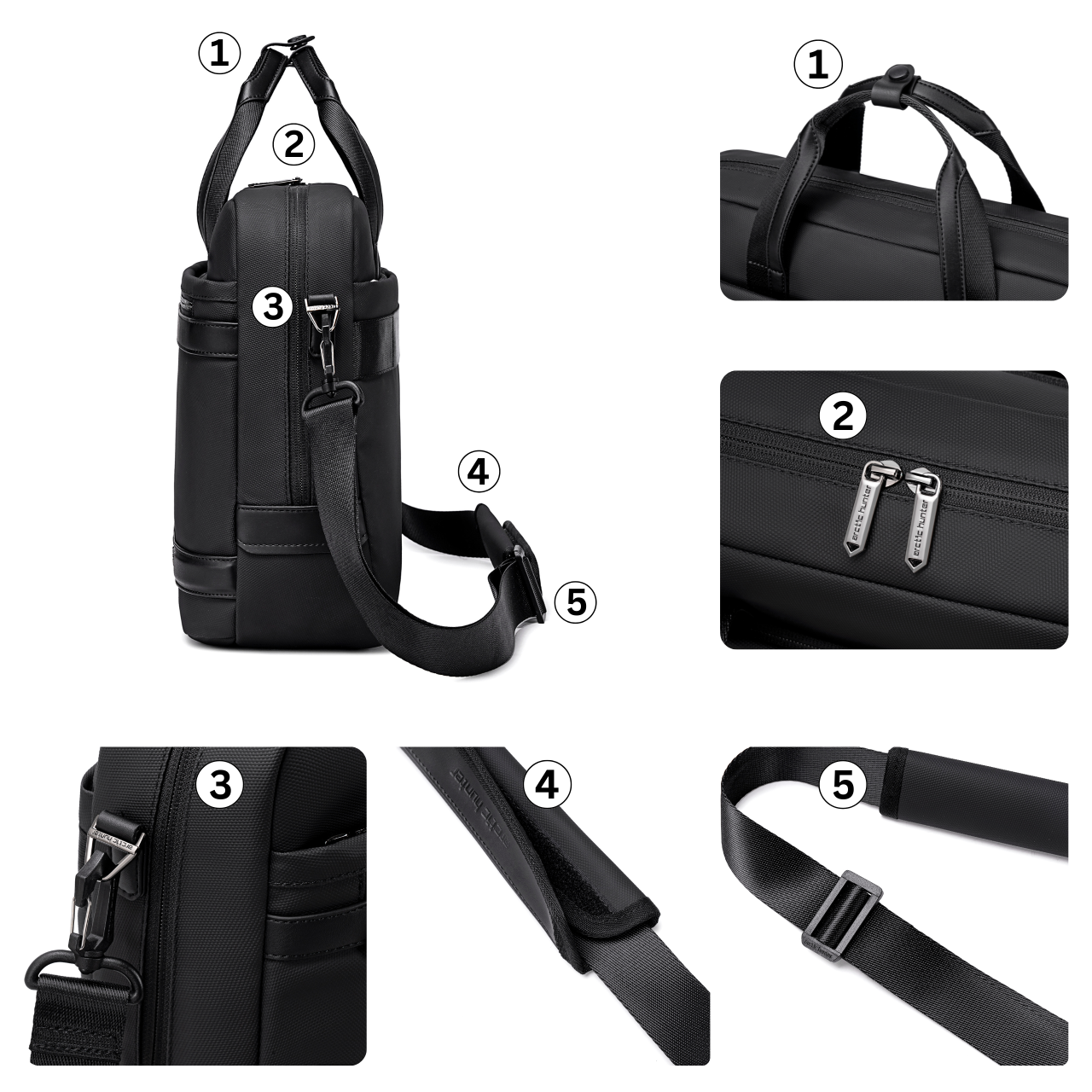 Czarna torba biznesowa to klasyka połączona z praktycznymi rozwiązaniami technicznymi. Każdy element został zaprojektowany z myślą o wygodzie, trwałości i intensywnym użytkowaniu.