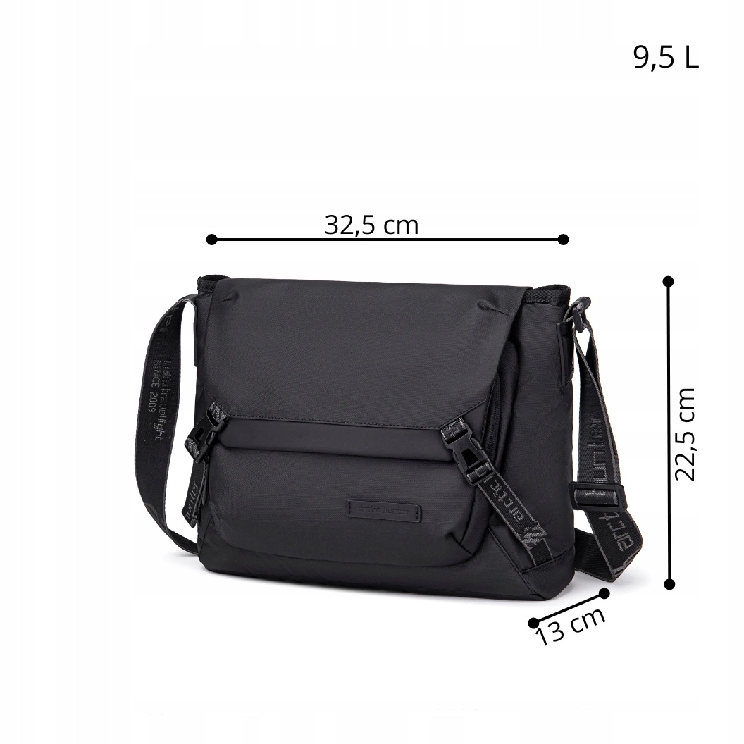- Czarna torebka listonoszka o dużej pojemności mieści format A4 i tablet. 2 komory, 8 kieszeni, solidne zamki i wodoodporny materiał gwarantują trwałość i wygodę. Styl miejski pasuje do pracy i na co dzień. Wymiary: 32,5×22,5×13 cm, pojemność 9,5 l.