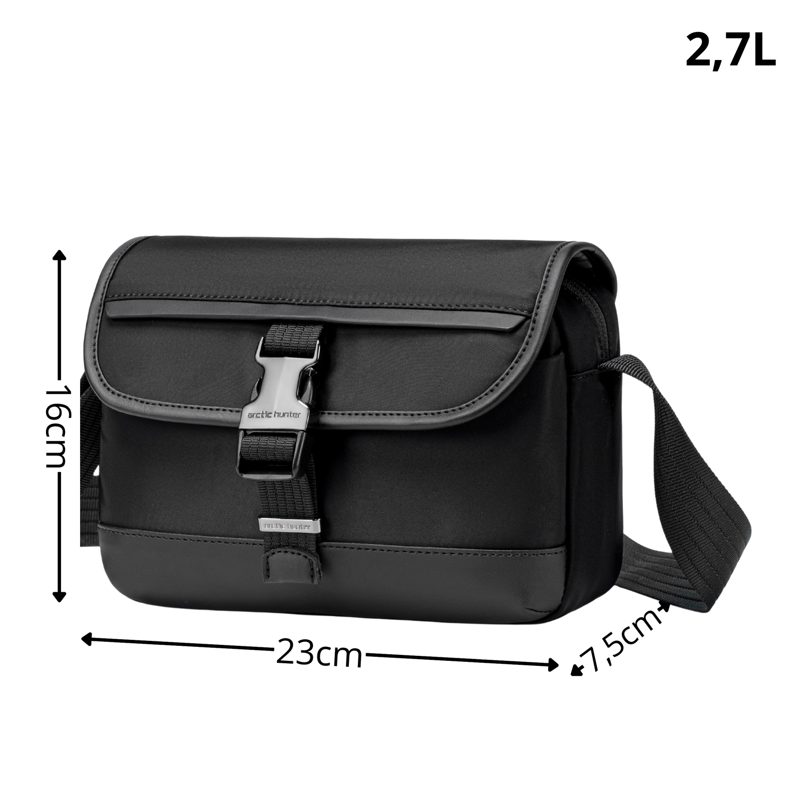 - Mała torebka na ramię,listonoszka z kompaktowymi wymiarami: 23x16x7,5 cm i pojemnością 2,7L.Idealna na dokumenty, telefon i drobiazgi. Funkcjonalna, lekka i wygodna do noszenia na co dzień. Styl uniwersalny, pasuje do każdej stylizacji męskiej i damskiej.