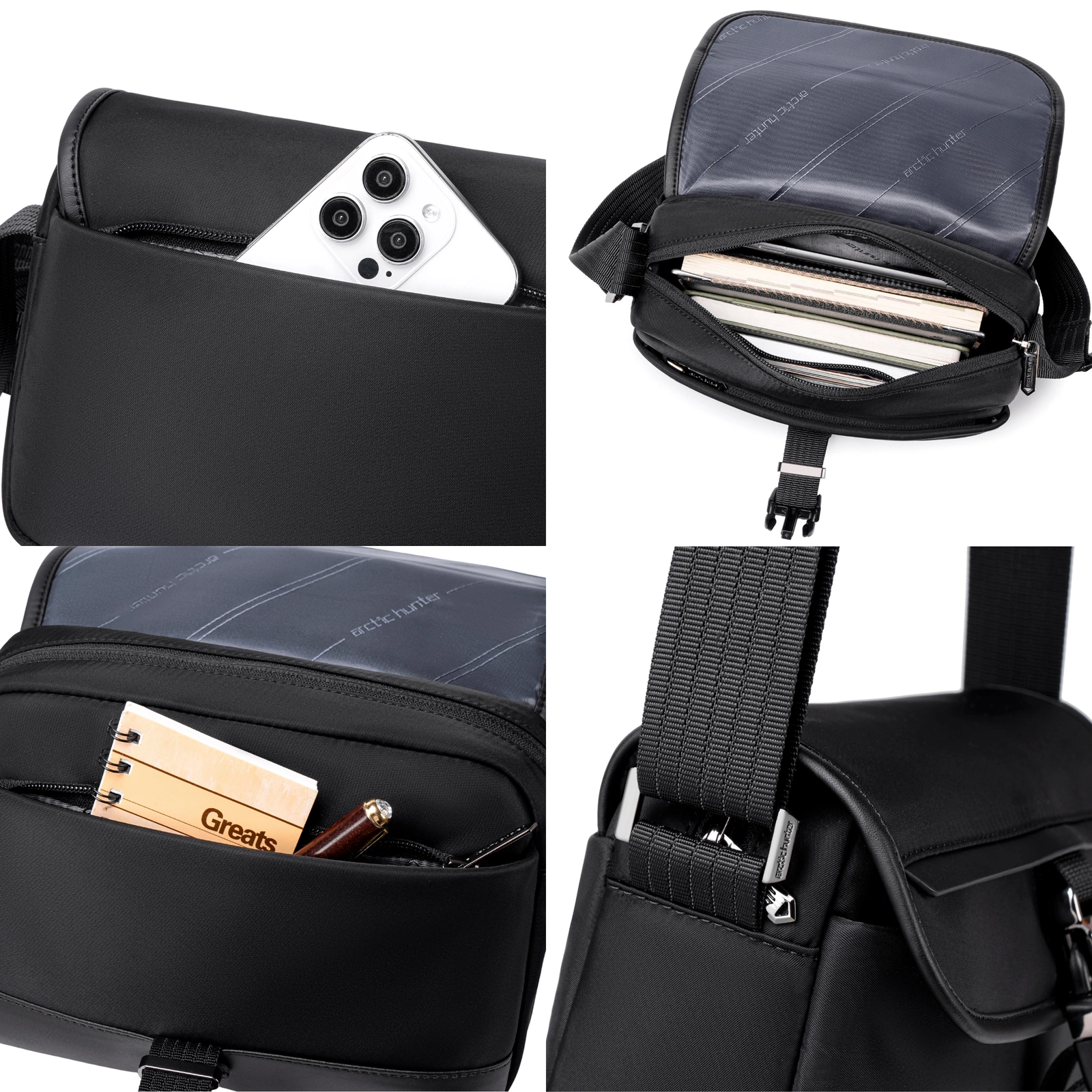 Torebka na ramię, mała, męsko-damska listonoszka,na dokumenty,na co dzień Arctic Hunter KB00828 black