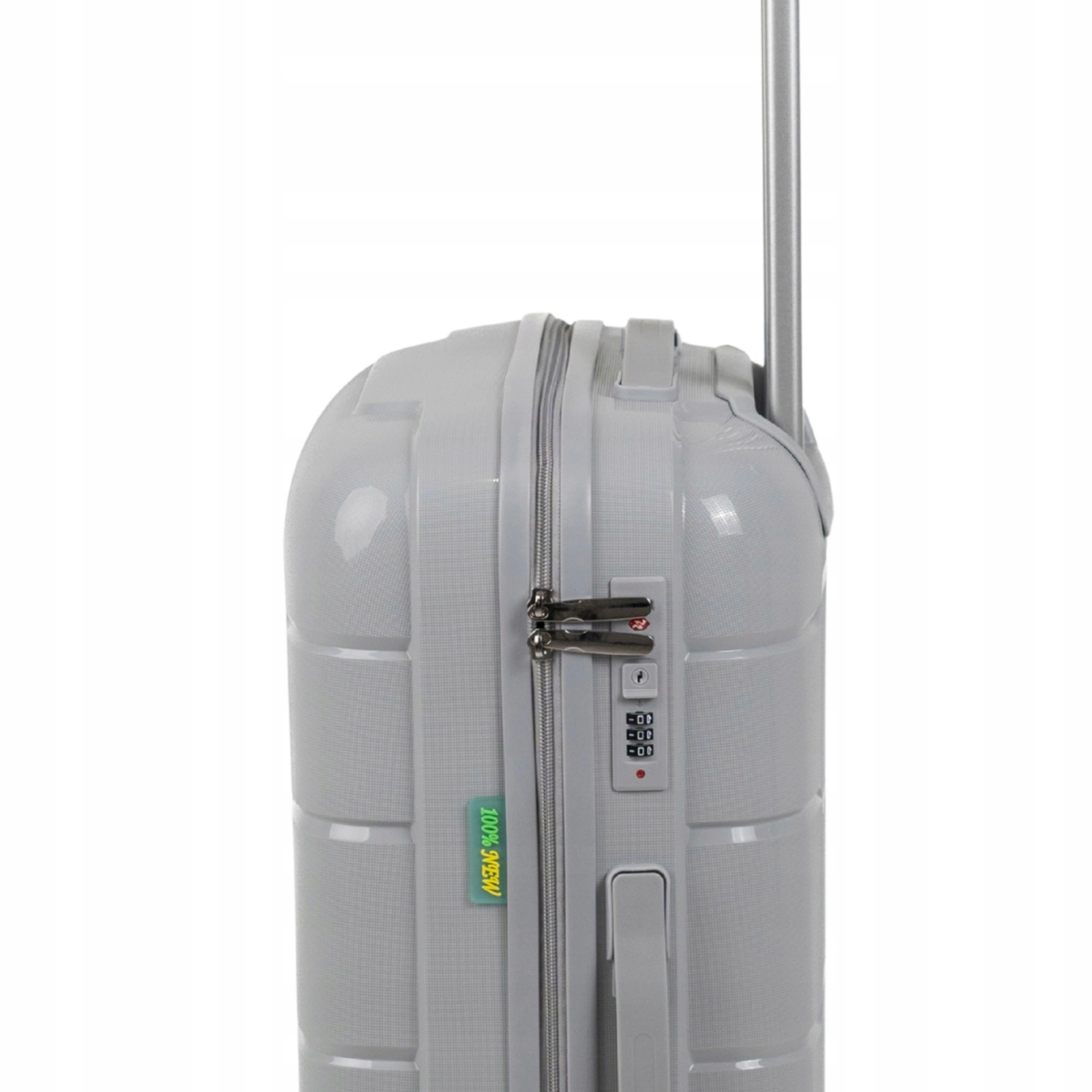 WALIZKA JASNOSZARA ŚREDNIA Z POLIPROPYLENU DO PODRÓŻY SAMOLOTEM AUTOBUSEM