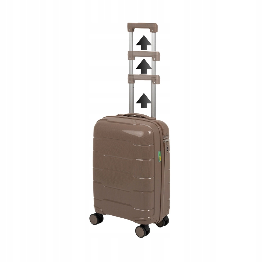 Ta beżowa walizka kabinowa została stworzona z myślą o osobach, które dużo podróżują i cenią wygodę. Dzięki kompaktowym wymiarom może zastąpić tradycyjną torbę podróżną, a prowadzenie na kółkach sprawia, że każda trasa staje się przyjemniejsza.