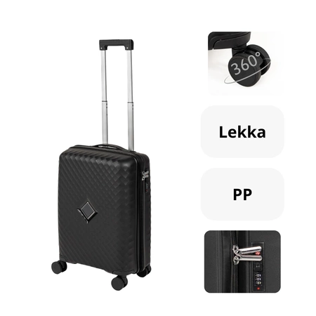 Walizka mała do samolotu czarna na kółkach, trwała i stylowa walizka podróżna z PP , pojemna 41 L Wowbag 7900 S black