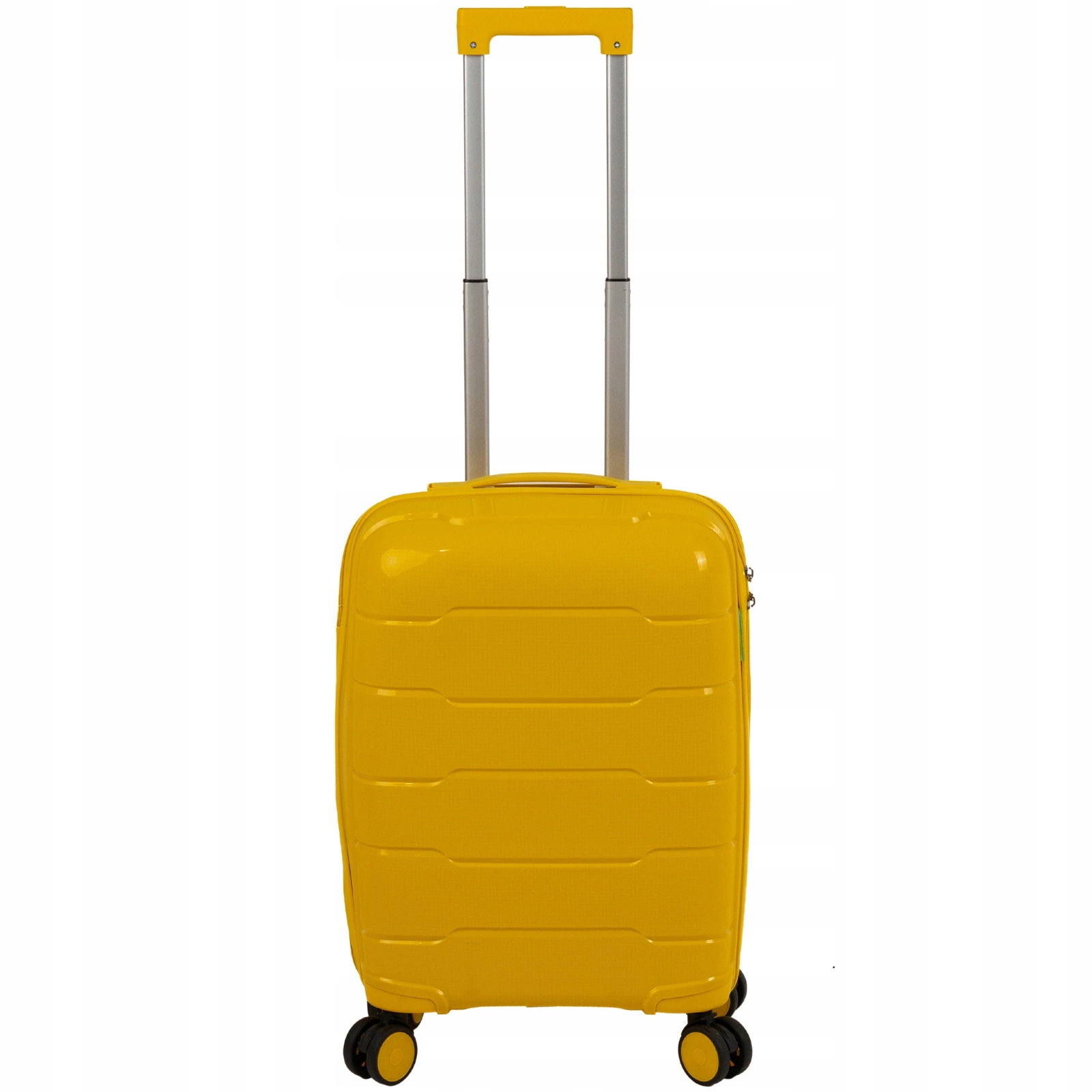 - Żółta walizka mała – modny design i funkcjonalność w jednym. Wykonana z PP, odporna na uszkodzenia i wilgoć. Wnętrze z pasami i kieszenią ułatwia pakowanie. Koła 360° zapewniają wygodę. Wymiary: 48x21x38 cm. Pojemność: 40 L.