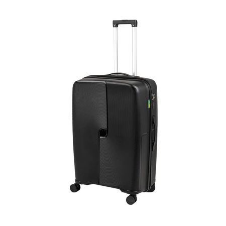 - Średnia walizka czarna z PP – klasyka w nowoczesnym wydaniu. Wytrzymała i lekka, idealna w podróże. Wnętrze z pasami i kieszenią sprzyja organizacji. Ciche koła obracane 360° ułatwiają prowadzenie. Wymiary Zewnętrzny: 60x25x46 cm. Pojemność: 69 L.