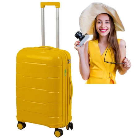 WYBIERZ IDEALNE POŁĄCZENIE PRAKTYCZNOŚCI, FUNKCJONALNOŚCI I JASKRAWEGO KOLORU I WYRUSZ W KOLEJNĄ NIEZAPOMNIANĄ PODRÓŻ⭐KUP JUŻ TERAZ - ŻÓŁTA WALIZKA ŚREDNIA MŁODZIEŻOWA LEKKA 2,7 KG 65X40X25 Z POLIPROPYLENU!