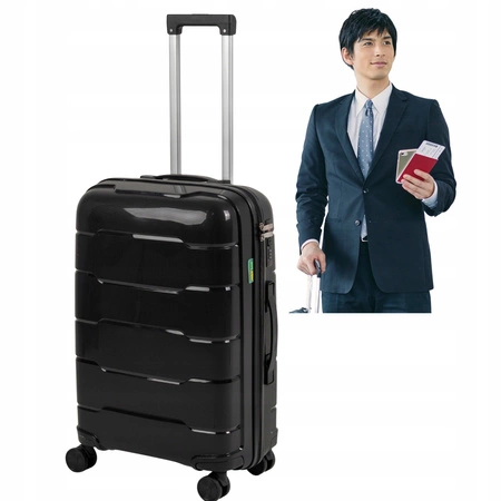 CZARNA WALIZKA ŚREDNIA TWARDA LEKKA 2,7 KG Z POLIPROPYLENU WYTRWAŁA